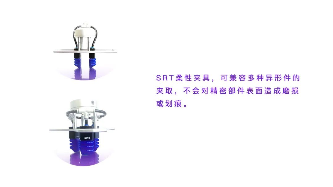 In this scheme, the flexible gripper of SRT has obvious advantages: the grasping action is gentle and the scope of grasping is wide. It is especially suitable for grasping products that are easy to damage or whose shape is uncertain.