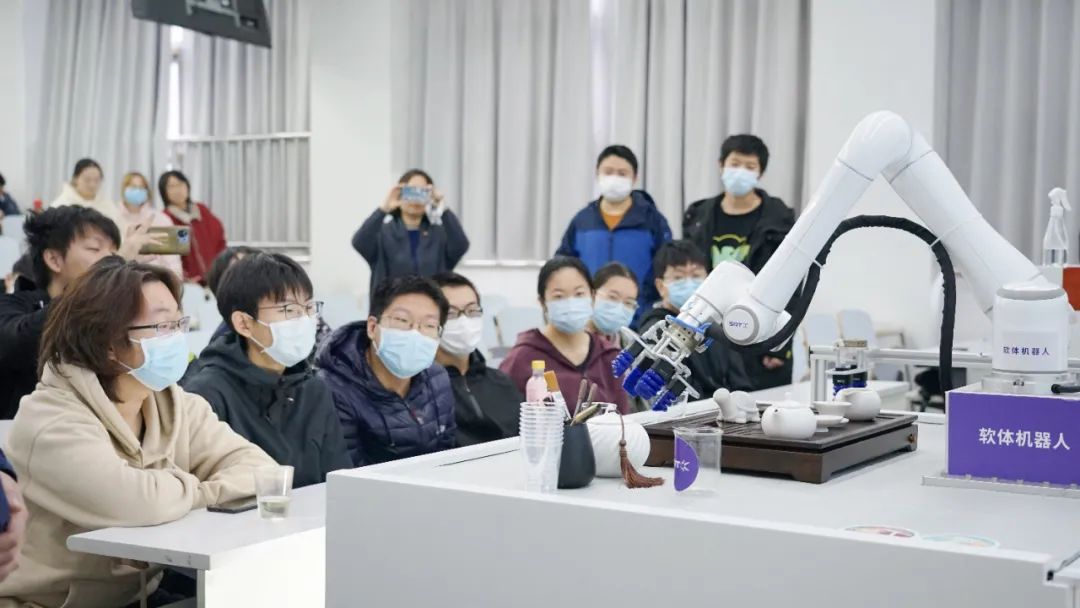 為了加深同學(xué)們對軟體機(jī)器人技術(shù)的理解,SRT公司專門將“茶道機(jī)器人"設(shè)備運(yùn)送至報告會現(xiàn)場,進(jìn)行茶飲制作演示。