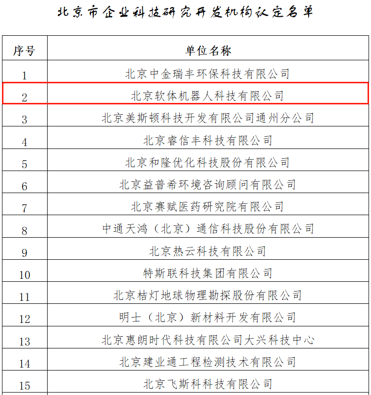 近日,北京市科學(xué)技術(shù)委員會、中關(guān)村科技園區(qū)管理委員會公布了《北京市企業(yè)科技研究開發(fā)機(jī)構(gòu)認(rèn)定名單》。SRT作為先進(jìn)技術(shù)的開拓者,擁有軟體機(jī)器人技術(shù)所需的彈性體材料技術(shù)、軟體機(jī)器人結(jié)構(gòu)設(shè)計和控制技術(shù)等整套技術(shù)研發(fā)能力。憑借其突出的自主研發(fā)實(shí)力、科技創(chuàng)新能力、科技成果轉(zhuǎn)化能力等,通過了北京市科委的嚴(yán)格審核,最終獲得專家們的一致肯定,成為“北京市級企業(yè)科技研究開發(fā)機(jī)構(gòu)”。