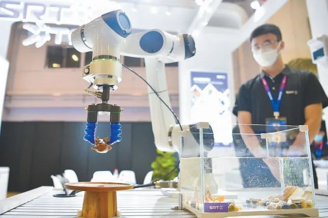 在HICOOL2022全球創(chuàng)業(yè)者峰會(huì)展覽展示區(qū),軟體機(jī)器人展示水中抓“海參”等技能。 機(jī)械臂緩緩下降浸入水中,兩根“手指”張開,一根柔軟的海參被輕松抓取,完好無(wú)損地放入一旁的托盤內(nèi)。在HICOOL會(huì)客廳展區(qū),正在進(jìn)行抓取展示的軟體機(jī)器人吸引不少人駐足觀看?!斑@次帶來(lái)的5臺(tái)設(shè)備都是我們的明星產(chǎn)品,可以應(yīng)用于食品生鮮、醫(yī)療器械等多個(gè)領(lǐng)域?!避涹w機(jī)器人科技有限公司工程師劉德才介紹。除了能在水中抓取物品的軟體機(jī)器人,源自對(duì)壁虎腳掌仿生學(xué)研究的另一臺(tái)設(shè)備,則能輕松抓取電路板和玻璃面板,不造成絲毫磨損。