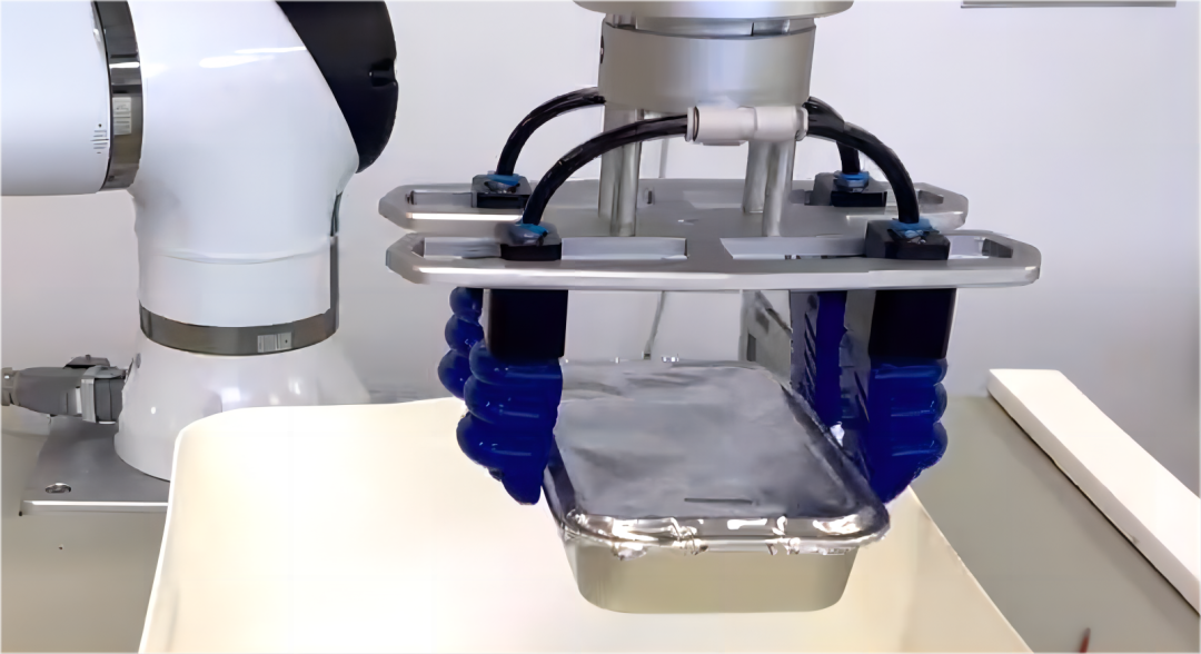 SFG柔性夾爪除了可抓取用于電子、醫(yī)藥等領(lǐng)域的各類吸塑托盤,還可對(duì)預(yù)制菜托盤以及裝有食物的各種鋁箔盒進(jìn)行分揀搬運(yùn),如: