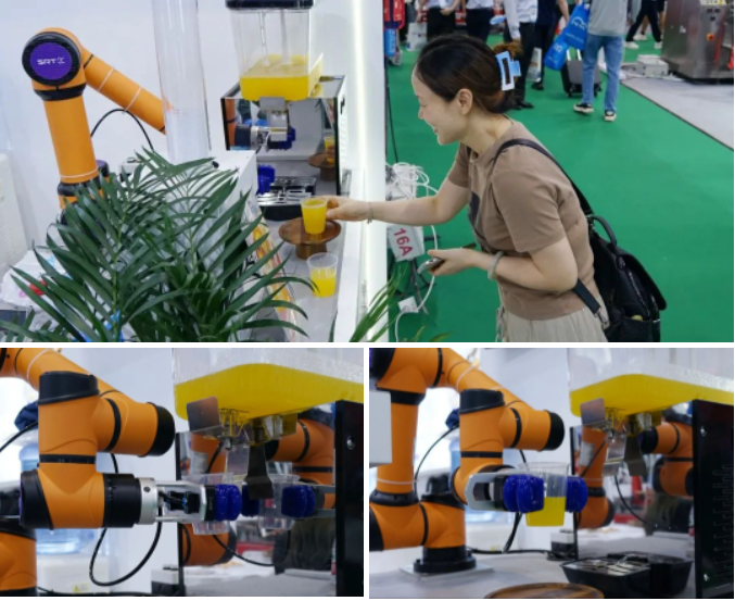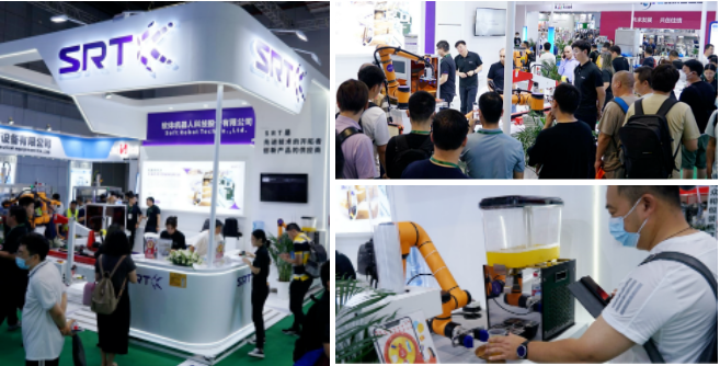 為了給現(xiàn)場觀眾提供最佳的產(chǎn)品觀摩機會,本次參展,SRT在抽獎環(huán)節(jié)精心設(shè)置了“機器人冷飲制作”互動體驗區(qū),讓機器人與抽獎嘉賓在“一送一接”間感受軟體科技對未來生活的改變。