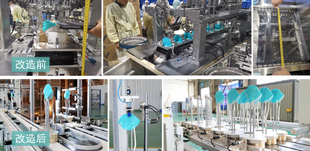 擴(kuò)展性強(qiáng),可對口罩后期的填料包裝、檢測、裝盒、打包等流程進(jìn)行精準(zhǔn)對接,滿足產(chǎn)能需要。