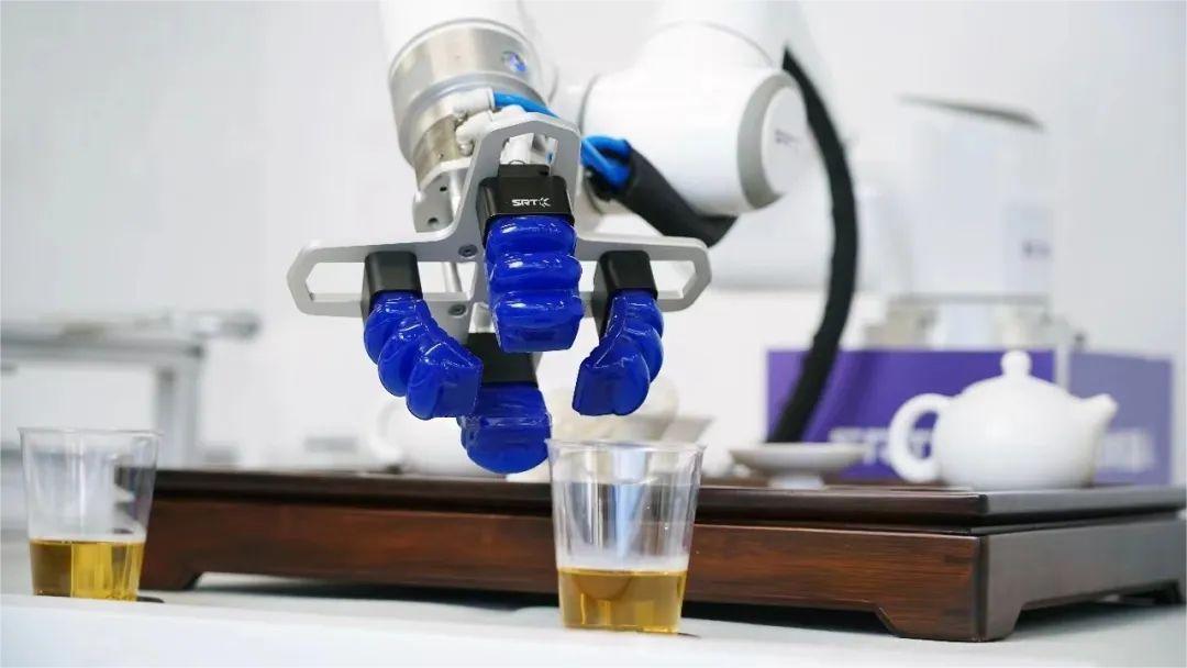 像人手一樣靈活的“藍(lán)色夾爪”輕輕地抓起茶壺蓋,又穩(wěn)穩(wěn)地拎起茶杯,注水、泡茶、倒茶,一整套動作如行云流水般流暢。近日,SRT軟體機(jī)器人接受了貝殼財經(jīng)記者的采訪。