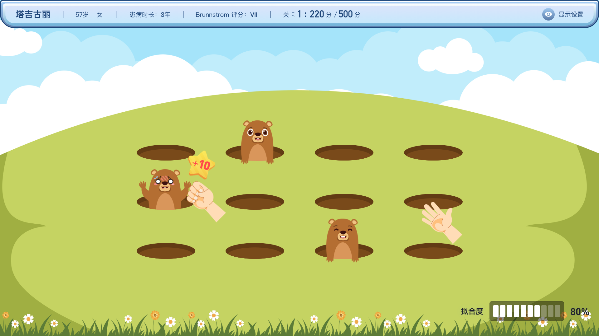 給予患者沉浸式互動體驗,通過高精度傳感器采集患者手部姿態(tài)與空間方位數(shù)據(jù),模擬手部動作。在游戲訓練中融入積分過關機制,通過結合康復理論的互動體驗來激發(fā)患者興趣,提高訓練積極性。