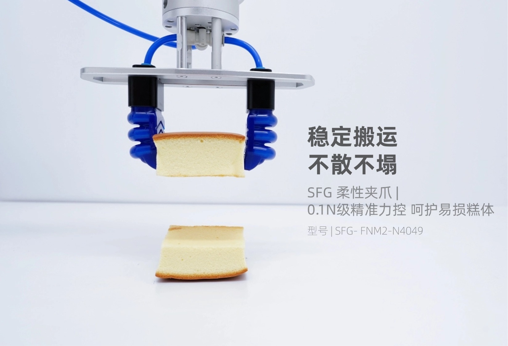l 破損率與產(chǎn)品價(jià)值的矛盾:剛性?shī)A爪依賴機(jī)械力夾持,即便反復(fù)調(diào)整壓力參數(shù),仍難以避免蛋糕邊緣擠壓變形;真空吸盤(pán)則因負(fù)壓吸附,易導(dǎo)致蛋糕表面破損,直接影響產(chǎn)品品相,增加次品率。